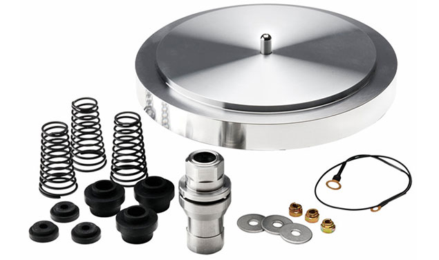 4隅にサスペンション機能を備えた脚部を持つ底板で、脚部はそれぞれ独立して高さの微調整が可能。プレーヤー内のスプリングとは異なる最低共振周波数で支持することによって、最低域の諧調再現能力を改善します。
